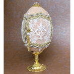 エッグアート材料エッグシェル 300-0344 カット済み グース L 通常価格 2233 円 (税込) 購入はこちら ※商品価格以外に別途送料がかかります。 説明 314-5026の蝶番を付け、アクセサリーケースに向いたカットをしてあります。 横型にして使用も可能です。 縦寸法 約23cm 参考例は300-0342を使用