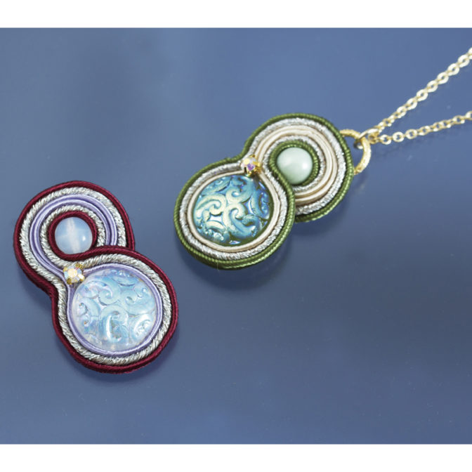針と糸がセットされたソウタシエのパーツのキット  ペンダントやピアス、ブローチにも使えます  丁寧な解説書付